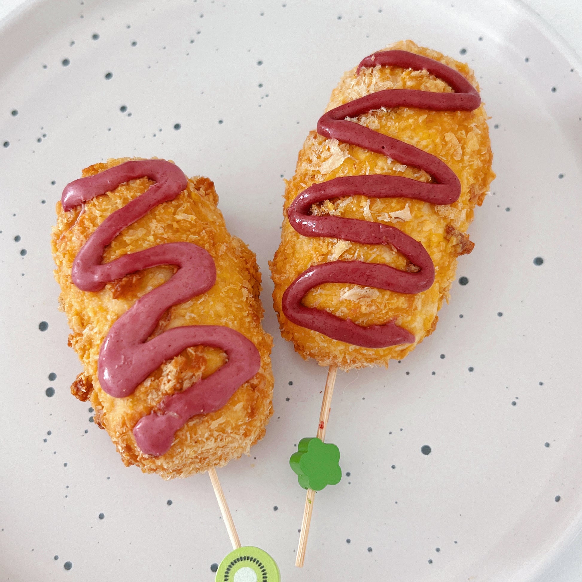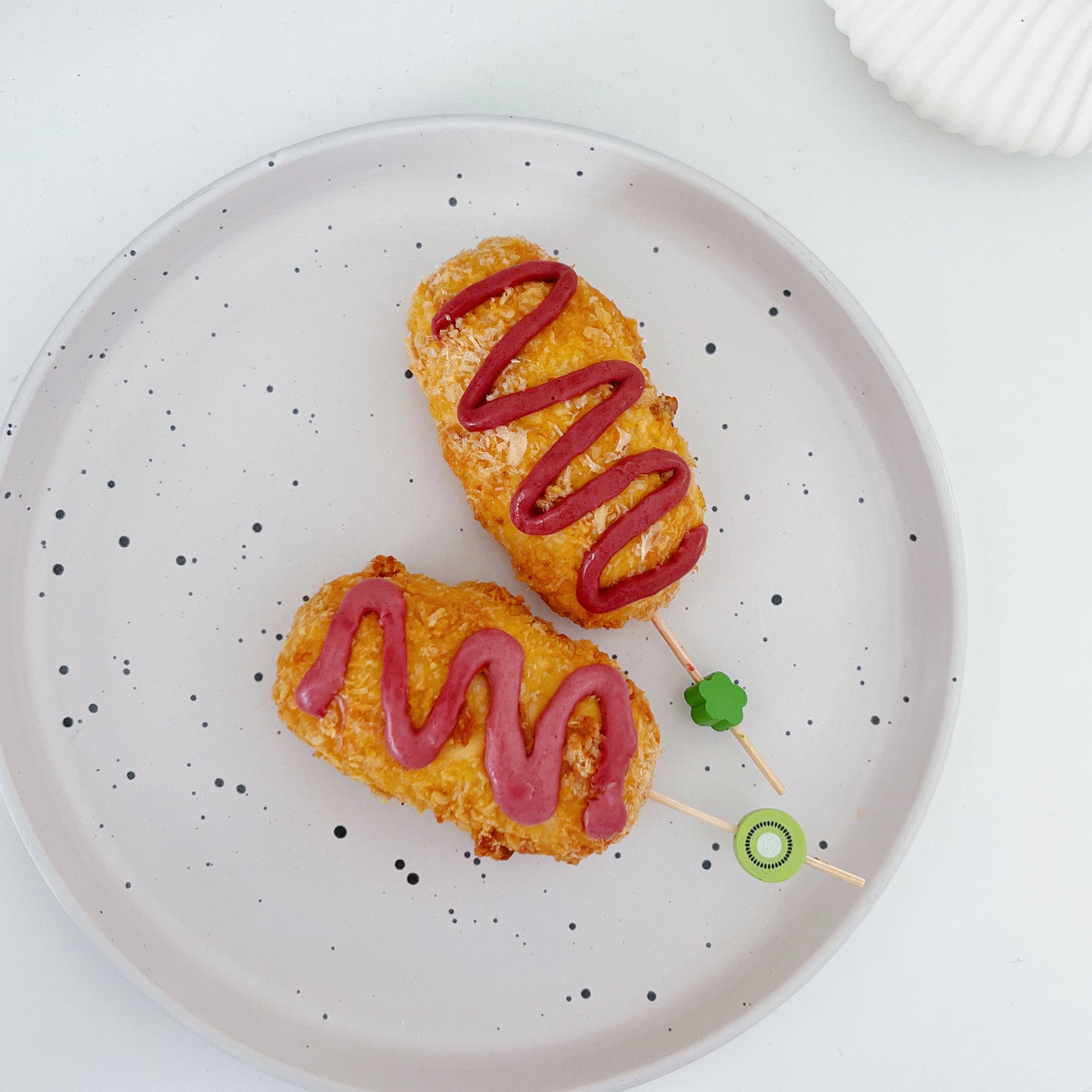 食材: 雞胸肉、粘米粉、果蔬粉、明太魚、蛋黃